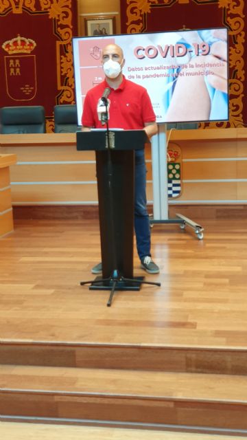 El alcalde de Molina de Segura, Eliseo García Cantó, ha presentado en rueda de prensa, hoy jueves 2 de septiembre, en el Salón de Plenos municipal, los datos actualizados de la incidencia de la pandemia del COVID-19 y de la marcha del proceso de vacunación en el municipio. Le ha acompañado el concejal de Deporte y Salud, Miguel Ángel Cantero García.
