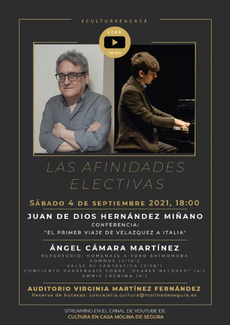 Este evento también podrá seguirse en el canal de YouTube Cultura en Casa Molina de Segura, en la dirección https://youtu.be/CNNGlHhaItI