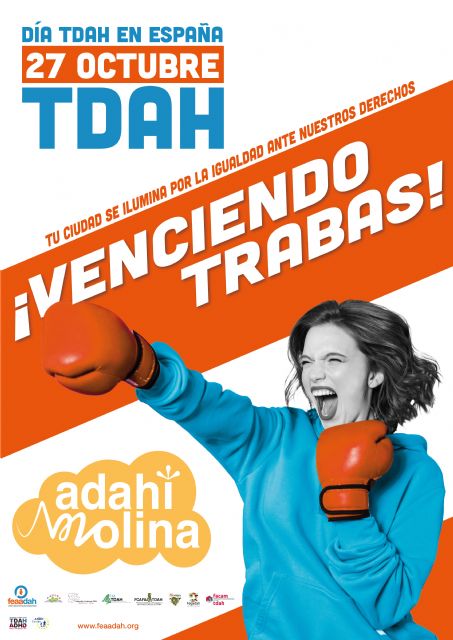 El Ayuntamiento de Molina de Segura se suma al Día Nacional del TDAH, que se conmemora hoy miércoles 27 de octubre, con la iluminación, en color naranja, de los pabellones Mercedes Merino y Consuelo Campoy de la Ciudad Deportiva El Romeral y el apoyo a través de los perfiles municipales en las redes sociales, con mensajes del alcalde de la localidad, Eliseo García Cantó, y la concejala de Educación, Isabel Gadea Martínez.