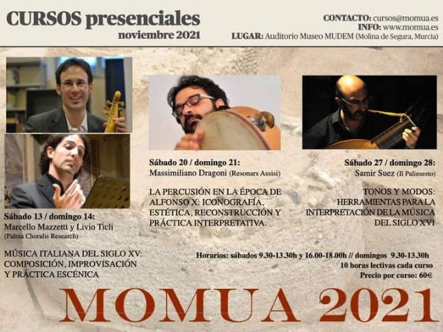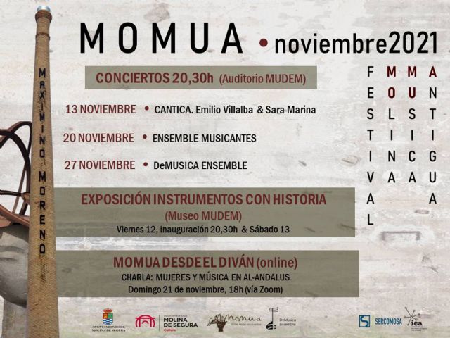 El Festival Molina Música Antigua, MOMUA 2021 (www.momua.es), promovido por la Concejalía de Cultura del Ayuntamiento molinense y el grupo vocal femenino de música antigua DeMusica Ensemble, tendrá lugar del 13 al 28 de noviembre, en el MUDEM, con entrada libre hasta completar aforo