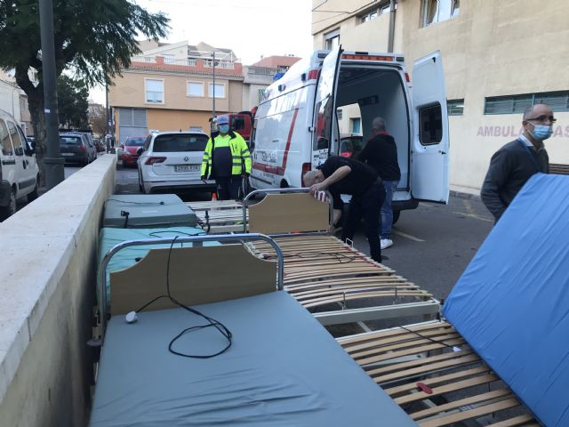 La donación de este equipamiento ha comenzado esta mañana y se prolongará hasta el próximo miércoles 29 de diciembre. 15 camas hospitalarias están destinadas a Cruz Roja, que serán repartidas entre distintos puntos de la Región, como Murcia, Lorca o la zona del Mar Menor; mientras que el resto se entregarán a diferentes organizaciones sociales, entre ellas Cáritas de Molina de Segura.