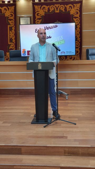 El programa LOS SÚPER JUEVES DE CINE, iniciativa del Ayuntamiento de Molina de Segura para fomentar el uso de las salas de cine, regresa este verano. La iniciativa ha sido presentada en rueda de prensa, hoy martes 5 de julio, en el Salón de Plenos municipal, por el alcalde de la localidad, Eliseo García Cantó, el concejal de Promoción Económica, José de Haro González, y la gerente y responsable de comunicación de Neocine, Rocío Freixinós.