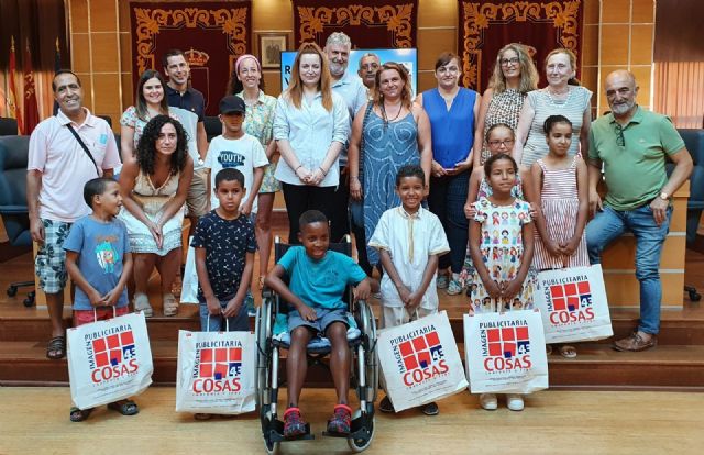 Una representación de los menores que participan en el Programa Vacaciones en Paz, junto a sus familias de acogida, son recibos en el Ayuntamiento de Molina de Segura
