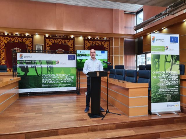 El Salón de Plenos del Ayuntamiento de Molina de Segura ha acogido hoy, miércoles 19 de octubre, el acto de presentación de las obras de construcción de la conexión peatonal y ciclable del centro urbano de Molina de Segura con la Huerta y la Vía Verde del Noroeste (Eurovelo-8), cofinanciada al 80% por el Fondo FEDER, en el marco del Programa Operativo Plurianual de España 2014-2020. Los trabajos han dado comienzo este mismo mes de octubre, con una inversión de 2.855.169,57 euros y un plazo de ejecución de 12 meses.