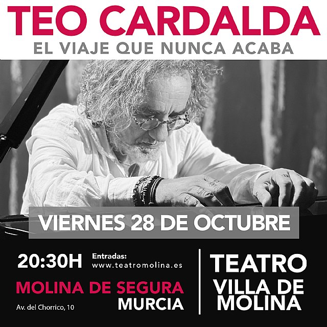 El viernes 28 de octubre en el Teatro Villa de Molina en Molina de Segura (Murcia) no te pierdas a Teo Cardalda en directo y súmate al Viaje Que Nunca Acaba.