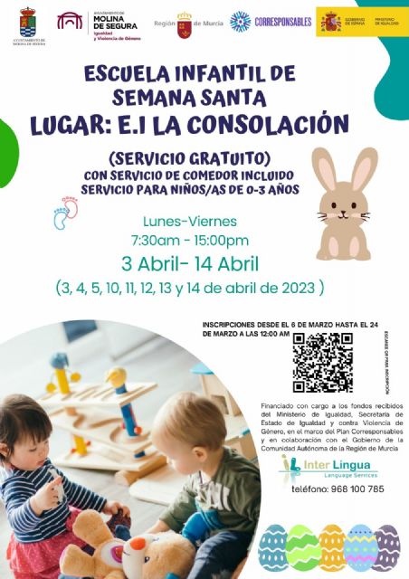 El Ayuntamiento de Molina de Segura abre el plazo de inscripción para el servicio de Corresponsables vacacionales de 0 a 3 años para Semana Santa 2023 el lunes 6 de marzo