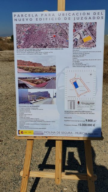 El secretario de Estado de Justicia (SEJ), Tontxu Rodríguez, ha visitado, hoy miércoles 22 de marzo, los terrenos del nuevo edificio de juzgados de Molina de Segura En su visita al municipio, Rodríguez, que ha estado acompañado por el delegado del Gobierno, José Vélez, y el alcalde de la localidad, Eliseo García, ha asegurado que el nuevo edificio de juzgados va a "solucionar los problemas actuales de dispersión de las sedes judiciales del municipio, mejorando así la prestación del Servicio Público de Justicia a los ciudadanos". En la actualidad, el partido judicial de Molina de Segura desempeña sus funciones en tres sedes judiciales distintas.