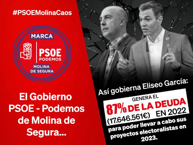Los populares denuncian que el Gobierno local PSOE – Podemos de Molina de Segura genera el 87% de la deuda en 2022 (Deuda 17.646.561,75 €), para poder llevar a cabo sus proyectos electoralistas en 2023.