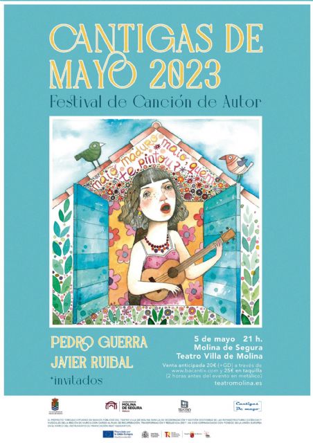 El Ayuntamiento de Molina de Segura recupera Cantigas de Mayo, que se celebra el viernes 5 de mayo en el Teatro Villa de Molina, con la presencia de Javier Ruibal y Pedro Guerra
