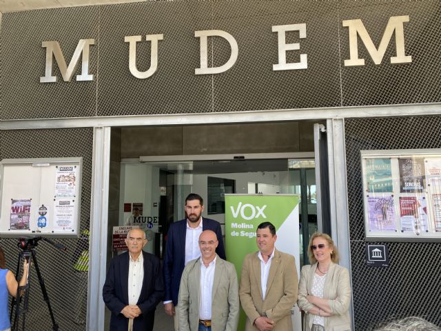 El eurodiputado de VOX, Jorge Buxadé, ha visitado Molina de Segura para participar en la campaña de “Cuida lo tuyo” celebrada en la mañana de hoy en el Mudem. El presidente provincial, José Ángel Antelo, y el candidato a la alcaldía del municipio, Antonio Martínez, lo han acompañado, así como la diputada nacional Lourdes Méndez y numerosos miembros y cargos del partido.
