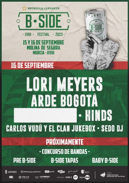 Esta mañana en rueda de prensa se ha presentado la XVIII del Festival B-SIDE que adelantó hace unos meses su primera confirmación para su cartel de 2023 con la actuación de los granadinos LORI MEYERS, uno de los grupos indie pop más importantes de nuestro país. Será el 16 de septiembre. cuando presentarán su más reciente trabajo en Molina de Segura, "Espacios infinitos". El festival se celebrará el 15 y 16 de septiembre en el recinto de eventos REMO.