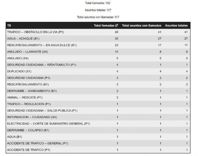 Hasta el momento se han recibido un total de 152 llamadas correspondientes a 117 asuntos, de los cuales podemos destacar: