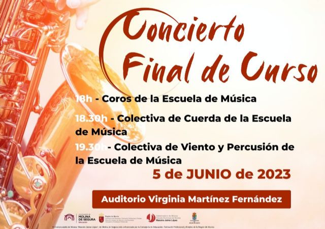 Tras la suspensión la pasada semana a causa de las fuertes lluvias, la Escuela Municipal Maestro Jaime López de Molina de Segura organiza finalmente esta semana, si la situación lo permite, las actividades de fin de curso, con audiciones el lunes 5 y martes 6 de junio, en el Auditorio Virginia Martínez Fernández, en el MUDEM. La entrada es gratuita, hasta completar aforo.
