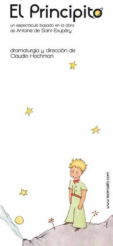 Teatro Silfo (Murcia) presenta EL PRINCIPITO, espectáculo teatral basado en la obra de Antoine de Saint-Exupéry, dirigido por Claudio Hochman, el sábado 17 de febrero, a las 19.00 horas, en el Teatro Villa de Molina (en Avenida del Chorrico, n° 10). El precio de la entrada es de 5 euros. Espectáculo subvencionado por el Instituto de las Industrias Culturales y las Artes (ICA) de la Región de Murcia.