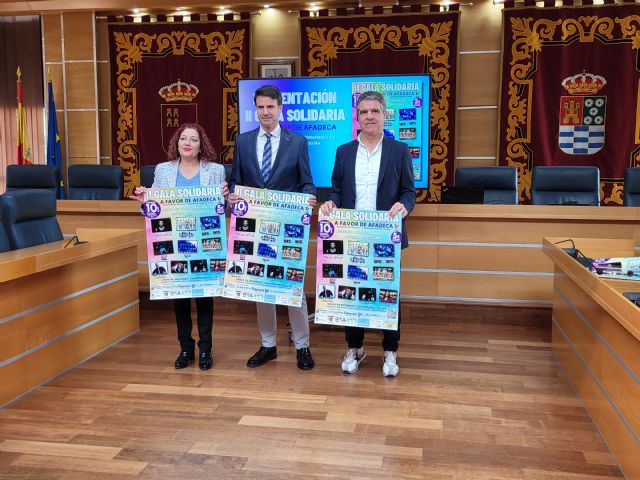 La II Gala Solidaria a favor de AFADECA (Asociación de Famosos y Deportistas Contra el Cáncer), organizada por la empresa Publimedia Eventos, en colaboración con el Ayuntamiento de Molina de Segura, tendrá lugar el domingo 10 de marzo, a las 12.00 horas, en el Auditorio Municipal Tomás Fernández Gil (en Parque de la Compañía). El evento ha sido presentado hoy miércoles en rueda de prensa por el alcalde de la localidad, José Ángel Alfonso, el presidente de AFADECA, Óscar Pérez, y la responsable de Publimedia Eventos, Fina Gil.