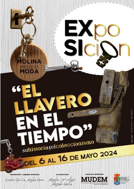La exposición EL LLAVERO EN EL TIEMPO. Su historia y el coleccionismo, de Gaby Guillén, organizada y comisariada por Eusebia de los Ángeles Bravo, en colaboración con la Concejalía de Cultura del Ayuntamiento de Molina de Segura, abre sus puertas al público del 6 al 16 de mayo, en la Sala de Exposiciones del MUDEM (en Plaza de Maximino Moreno, s/n). El acto de inauguración tiene lugar el lunes 6 de mayo, a las 20.00 horas. Asisten el alcalde de Molina de Segura, José Ángel Alfonso, la concejala de Cultura, María Hernández, y la comisaria de la muestra, Eusebia Bravo.