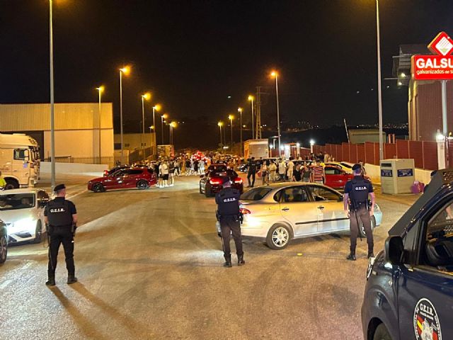 El alcalde de Molina de Segura, José Ángel Alfonso, ha informado que el Grupo Especial de Intervención Rápida (GEIR) de la Policía Local de Molina de Segura puso fin el pasado fin de semana a una concentración ilegal en la que participaban unos 300 vehículos y que se desarrolló en diversas calles del polígono industrial La Polvorista.