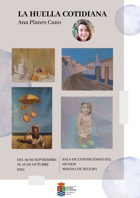 La exposición LA HUELLA COTIDIANA, de Ana Planes Cano, Anika, organizada por la Concejalía de Cultura del Ayuntamiento de Molina de Segura, abre sus puertas al público del 19 de septiembre al 18 de octubre, en la Sala de Exposiciones del MUDEM (en Plaza de Maximino Moreno, s/n). El acto de inauguración tiene lugar el jueves 19 de septiembre, a las 20.00 horas. Asiste la concejala de Cultura, María Hernández.