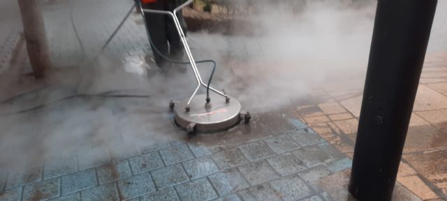 El alcalde de Molina de Segura, José Ángel Alfonso, ha informado esta mañana sobre los diversos trabajos de limpieza que se están realizando, a modo de prueba inicial, sobre los pavimentos del Paseo Rosales y la Plaza de la Región Murciana, ambas vías en el centro urbano de la ciudad. Esta actuación, que se inició el martes pasado, "se va a prolongar durante dos semanas y consiste en la limpieza del pavimento de adoquín, mediante la utilización de un sistema especial de vapor y agua a alta temperatura, que permite la retirada de forma más eficiente de la capa de suciedad sobre el pavimento, la limpieza de manchas puntuales y la retirada de los chicles adheridos al suelo", ha explicado el regidor.