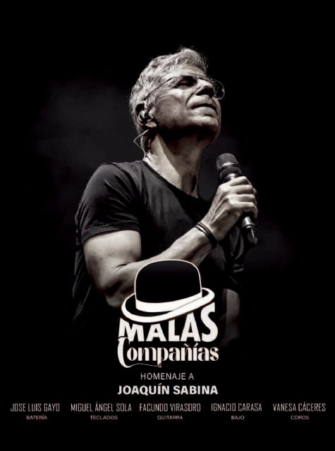 Malas Compañías (Almería) presenta el espectáculo MALAS COMPAÑÍAS, Tributo a Joaquín Sabina, el sábado 31 de mayo, a las 20.00 horas, en el Teatro Villa de Molina (en Avenida del Chorrico, n° 10). El precio de la entrada es de 16 euros, más gastos de gestión, anticipada; y 18 euros, en taquilla (venta anticipada exclusivamente online a través de la web www.bacantix.com).