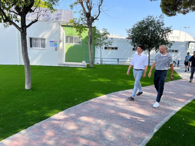 El alcalde de Molina de Segura, José Ángel Alfonso, acompañado por el edil de Deporte y Salud, Carlos Perelló, ha visitado este viernes la Ciudad Deportiva El Romeral, donde el Gobierno local ha llevado a cabo una importante inversión, las obras de sustitución de los equipos del sistema de filtración y deshumectación en las piscinas cubierta y exterior pequeña, así como de reparación en la playa de las mismas.