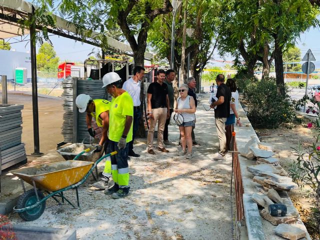 El alcalde de Molina de Segura, José Ángel Alfonso, ha informado de las nuevas inversiones en la pedanía de La Ribera, que consisten en la adecuación y mejora del actual paseo ajardinado que discurre junto a la Rambla (Calle Sánchez Aguilar), "mejorando la accesibilidad, ya que el trazado se encuentra actualmente en tierra y origina muchos problemas cada vez que llueve". Durante la visita realizada a la zona hoy viernes, junto al edil de Vía Pública, Sergio Bernal, y el concejal de Pedanías, José Manuel Hernández, el regidor molinense, José Ángel Alfonso, ha explicado que se está procediendo a la pavimentación del paseo con adoquín, creando desde su entrada un asiento corrido en mampostería terminado en madera y delimitando zonas ajardinadas con bordillo.