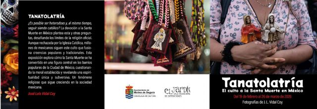 La exposición TANATOLATRÍA. El culto a la Santa Muerte en México, con fotografías de José Luis Vidal Coy, organizada por la Concejalía de Cultura del Ayuntamiento de Molina de Segura, abre sus puertas al público el jueves 19 de febrero, en la Sala Municipal de Exposiciones El Jardín (en Calle Profesor Joaquín Abellán, n° 8). La concejala de Cultura, María Hernández asiste a la inauguración de la exposición a las 20.00 horas. La muestra podrá visitarse hasta el día 26 de marzo, en el siguiente horario: de martes a viernes, de 17.30 a 20.00 horas, los jueves, de 10.30 a 13.00 horas; y los sábados, de 11.00 a 13.30 horas.