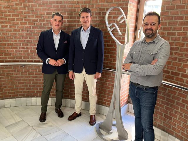 El alcalde de Molina de Segura, José Ángel Alfonso, ha recibido esta mañana, en el despacho de Alcaldía, al artista molinense Andrés García, conocido artísticamente como Andrex, que ha cedido gratuita y temporalmente tres esculturas, realizadas en acero inoxidable, que permanecerán expuestas en el Ayuntamiento de Molina de Segura durante los próximos seis meses. Al acto de cesión ha asistido también el edil de Patrimonio, Fran Hernández Gómez.