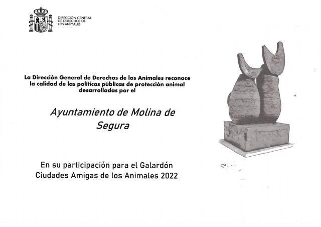 Dicho reconocimiento se ha hecho por la Dirección General de Derechos de los Animales en el marco de los Galardones de las Ciudades Amigas de los Animales